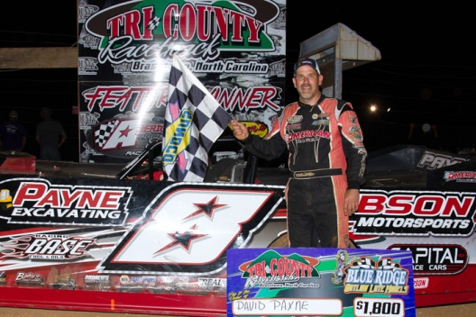 What won the race: David Payne of Murphy, N.C., picked up his first Blue Ridge Outlaw Late Model Series victory of the season, winning at his home track for an $1,800 triumph. Payne led all 30 laps and crossed the finish line 2.567 seconds ahead of runner-up Brian Carswell.