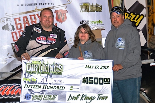 What won the race: The fourth of four leaders, sixth-starting A.J. Diemel of Elk Mound, Wis., won Saturday’s DiscountShopTowels.com Dirt Kings Tour season opener at Shawano Speedway, beating 11th-starting Nick Anvelink to the checkers for a $1,500 victory. It’s was Diemel’s first-ever victory on the second-year tour.
