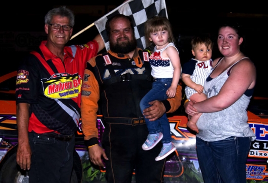 What won the race: Inheriting the lead when frontunners tangled with 12 laps remaining, surprise entrant Justin Kay of Wheatland, Iowa, grabbed his first Malvern Bank Super Late Model Series at Off Road Speedway. Kay, who started sixth, earned $2,000 Saturday in a race where Kyle Berck led the first 18 laps but spun after contact with hometown driver Tad Pospisil in a battle for lead.
