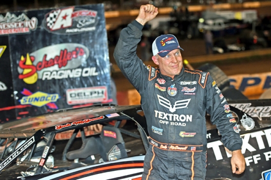 Dale McDowell celebrates his $5,000 Spring Nationals win at Dixie.