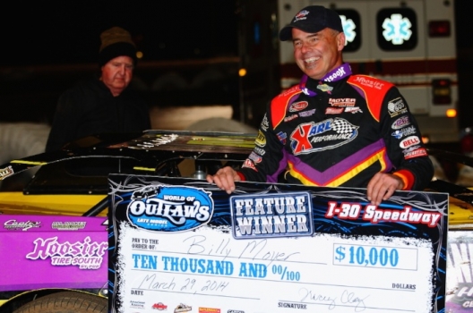 Billy Moyer smiles in victory lane after his home-state victory.