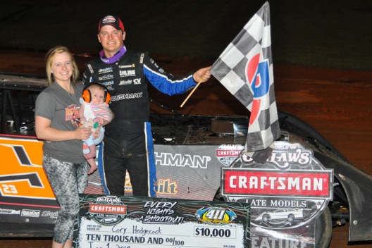 "I knew if I was every going to have a chance to win one of these races, it was no doubt going to be here," Hedgecock said in victory lane. "I'm tickled to death."