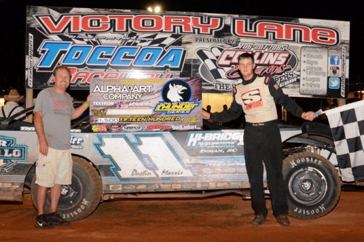 What won the race: Dustin Morris of Landrum, S.C., led every lap Saturday at Toccoa Raceway for a $1,500 victory on the Alpha Art Thunder Series for 602 Crate Late Models. Morris took the checkers 1.421 seconds ahead of runner-up Justin Sims.