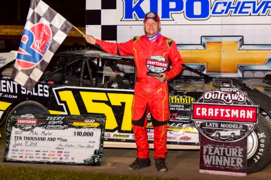 Notes: Along with thanking his crew and sponsors in victory lane, winner Mike Marlar passed along his winner’s check to series announcer Rick Eshelman in tribute to the recent passing of Eshelman’s long-time girlfriend, Sandy Holt, who spent several years scoring for the WoO tour. … Devin Moran of Dresden, Ohio, ran as high as fourth early in the race before settling for eighth. … David Breazeale of Four Corners, Miss., started third and held that spot early before fading to 10th. … WoO drivers wrap up three straight nights of action on Saturday with a trip to NAPA Wayne County Speedway in Orrville, Ohio.