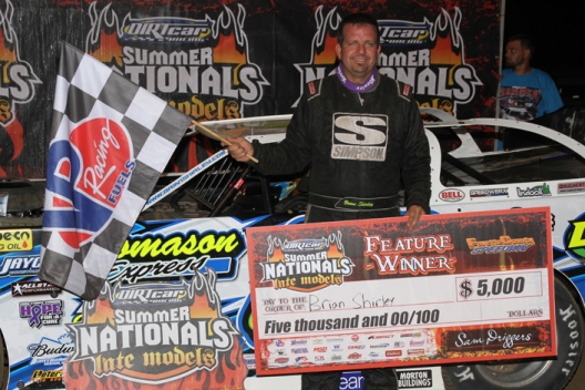 BROWNSTOWN, Ill. — One by one the challenges came. But with a fast car and a little help from Lady Luck, Brian Shirley systematically repelled them. Shirley, of Chatham, Ill., won his second DIRTcar Summer Nationals feature of the season, but it wasn’t without a few tense moments.