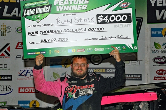 What won the race: Advancing from his fourth starting position, Rusty Schlenk of McClure, Ohio, raced to victory in Friday’s YellowHose.com 40 at I-96 Speedway. Schlenk outran Brandon Thirlby for a $4,000 victory.