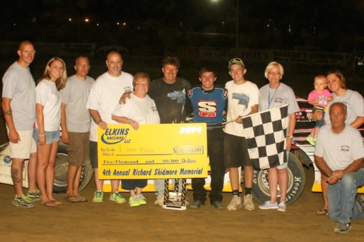 Richard Skidmore's family joins Devin and Donnie Moran in victory lane at Elkins Raceway.