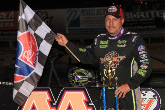 Madden, 43, of Gray Court, S.C., ultimately turned back several challenge from York, Pa.’s Eckert to pace every lap and capture the World of Outlaws Craftsman Late Model Series event’s $10,000 top prize, but the national tour’s points leader paid little heed to those threats. He was so confident in his Barry Wright-built machine’s speed that he felt only his own miscue could cost him the checkered flag.