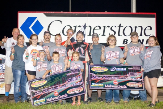 What won the race: Fifth-starting Kyle Berck of Marquette, Neb., completed a doubleheader sweep on the Malvern Bank Super Late Model Series at Junction Motor Speedway, earning $2,000. Berck captured the July 28 makeup race after earning $3,000 in the night's regularly scheduled series feature.