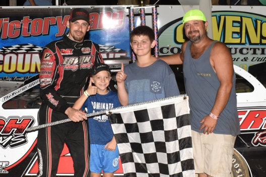 Winner's sponsors: Erwin’s MBH MasterSbilt Race Car has a Battenbilt Racing Engine and is sponsored by High Farms, Erwin Racing Supply, Day Motor Sports, Les Frickshun, Larry Shaw Race Cars by Erwin, Thomas Clarke Performance, Collins Signs, TWC Concrete and Doeblers.com.