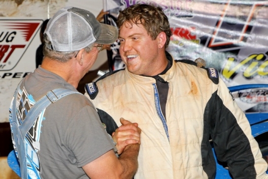 Brett Hamm is congratulated in Cherokee's victory lane.