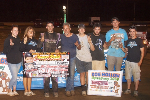 What won the race: Taking the lead from Tyler Bare on a lap-nine restart, Kyle Hardy of Stephens City, Va., earned $5,000 Sunday on the Zimmer's United Late Model Series at Dog Hollow Speedway. The 12th-place starter captured the eighth annual Connor Bobik Memorial.