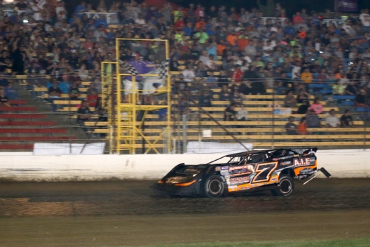 Ricky Weiss takes the checkers for his WISSOTA 100 victory.