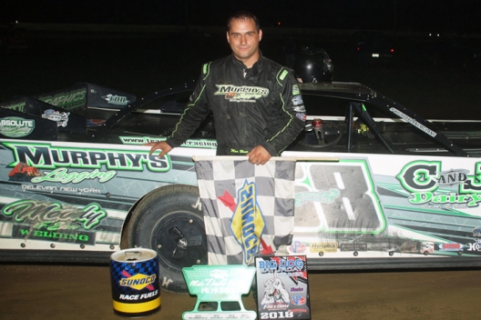 Winner's sponsors: Blair’s Rocket Chassis is sponsored by Specialty Products, Murphy’s Logging, C&J Dairy, Previty’s Auto Wrecking, Upstate Auto Group, Sons of the American Legion Post 1460, Moody & Son Welding, Niemeyer’s Garage and Integra Racing Shocks.
