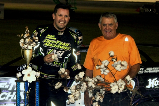 COLUMBUS, Miss. — Restart after restart, Chris Ferguson was able pull ahead of Billy Moyer and enjoy an oh-so-brief moment of daylight at the front of the pack. But time and time again, Moyer powered back ahead on the outside, regained control and pulled out to a comfortable advantage. Thanks to three cautions in the first 13 laps, that’s the way the first half of Friday’s 30-lap Magnolia State Cotton Pickin’ 100 opener went.