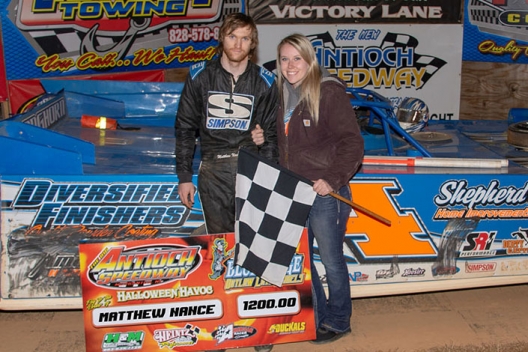 What won the race: Overtaking Ricky Weeks amid lapped traffic, polesitter Matthew Nance of Ronda, N.C., grabbed the point and held on for his first Blue Ridge Outlaw Late Models win Saturday at Antioch Speedway. Nance, who set the quick time and won the dash Friday, earned $1,500. Twelve-year-old Bryson Harper nipped Weeks at the line for second.
