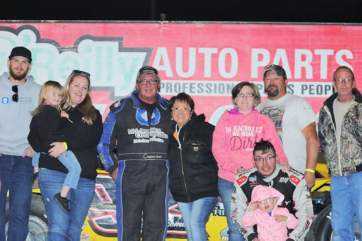 Delbert Smith and supporters in victory lane at 81 Speedway.