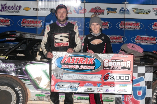 What won the race: Completing a sweep of the Georgia State Outlaw Championship weekend, Travis Pennington of Stapleton, Ga., marched forward from the sixth starting spot to capture Saturday's 50-lap Fastrak Racing Series feature at Screven Motor Speedway. He overtook Dillon Brown for the lead en route to his $3,000 triumph.