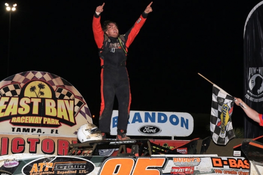 What won the race: Steve Mathis Jr. of Plant City, Fla., overtook Kyle Bronson with two laps remaining Saturday at East Bay Raceway Park for a $5,400 Crate Late Model victory in the Dalton Myers 54.
