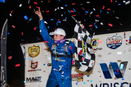 Snapping the two-race East Bay win streak of Tyler Erb, Jonathan Davenport of Blairsville, Ga., picked up his first series victory during a thrilling 40-lap main event on Wednesday. Erb, of New Waverly, Texas, had won three of four Lucas Oil Series races this season before Davenport managed to slow down the new Best Performance Motorsports driver.