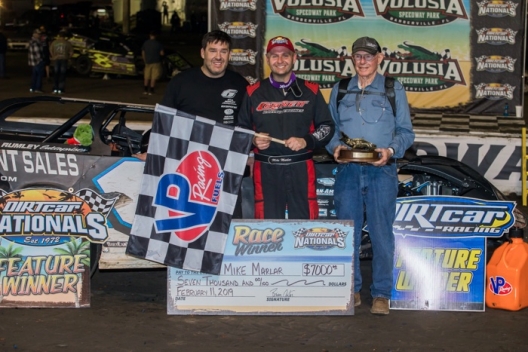 Winning in just the third race of their partnership, the Winfield, Tenn., driver collected $7,000 Monday at Volusia Speedway Park, earning his first Gator trophy for his first career DIRTcar Nationals triumph.