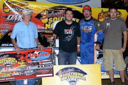 RURAL RETREAT, Va. (July 21) — Reigning Schaeffer Oil Southern Nationals champ Jonathan Davenport doesn’t plan on running the full tour in 2014, but that didn’t keep him from making his mark in the opener on the 10-race series founded by Ray Cook.