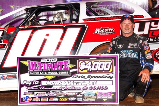What won the race: Tracking down leader Michael Page on lap 28, Casey Roberts of Toccoa, Ga., slipped by in traffic and then withstood challenges from Page over the final few laps to capture his first Ultimate Southeast Series win of the season Saturday at Dixie Speedway. Earning $4,000, Roberts recorded his series-leading 21st career victory. Page finished second ahead of Chris Madden.