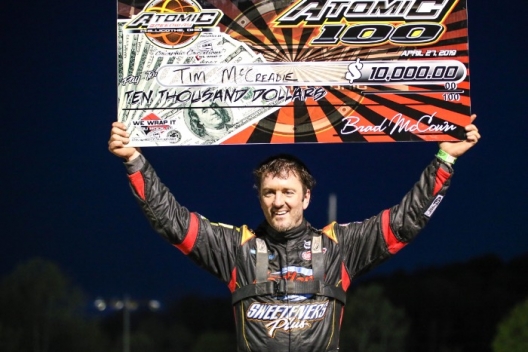 Tim McCreadie earned $10,000 for winning Sunday's Atomic 100.