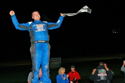Travis Stemler celebrates his first Ethanol Tour victory.