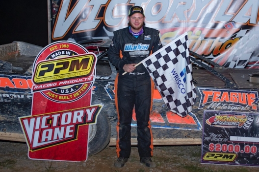 What won the race: Outrunning Anthony White, fast qualifier Jake Teague of Petros, Tenn., scored a $2,500 American Crate All-Stars Series victory Saturday at Wartburg Speedway.