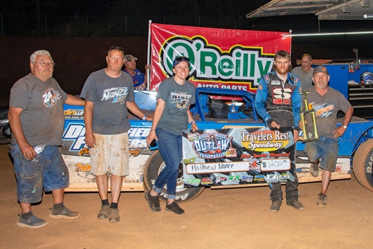 Matthew Nance and crew enjoy his third-straight Blue Ridge Outlaws win.