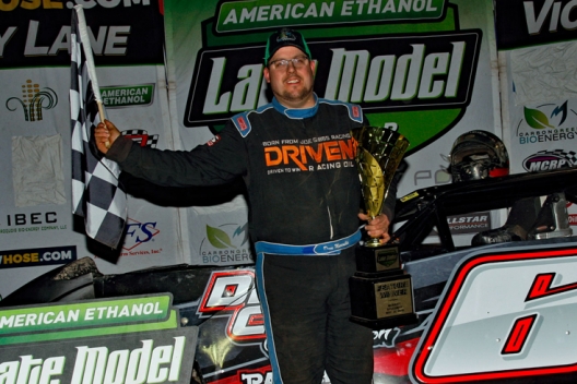 What won the race: Making a dramatic burst from third-to-first on a lap-29 restart , Dona Marcoullier of Houghton Lake, Mich., registered a $4,000 victory in Sunday's American Ethanol Late Model Tour-sanctioned CHS 40 at Merritt Speedway. He vaulted past Rusty Schlenk and Brandon Thirlby to lead lap 30 and rolled to his first win of 2019 on the Michigan-based series.