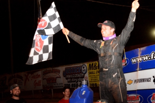 Carson Ferguson emerges to celebrate at Toccoa Raceway.