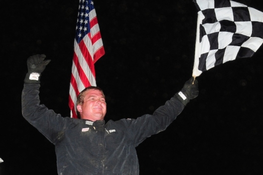 Jeremy Hines celebrates in Brownstown's victory lane.
