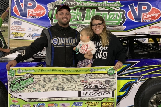 What won the race: Snapping Brad Looney’s six-race series win streak, eighth-starting Brandon Hunter of Alma, Ark., won Friday’s Malvern Bank Cash Money Super Dirt Series main event at Thunderbird Speedway. Looney finished second after starting ninth, while fourth-starting Michael Maggard finished third. Hunter earned $1,000 for his third career series triumph.