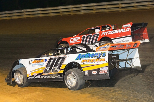 Key notes: Hardy's victory came just seven weeks after his first-ever Super Late Model victory at Winchester (Va.) Speedway. ... Hurry-up mode beat rain that began just after victory lane interviews. ... Anderson led 13 laps before Fitzgerald took control and opened up a comfortable lead. ... Hardy began to reel in Fitzgerald past the halfway point and made the winning move on the 39th lap. ... A Trever Feathers-Jason Covert tangle in heat action resulted in extracurricular activity in the pits. ... Kyle Lear won the Limited Late Model feature from the 11th starting spot.