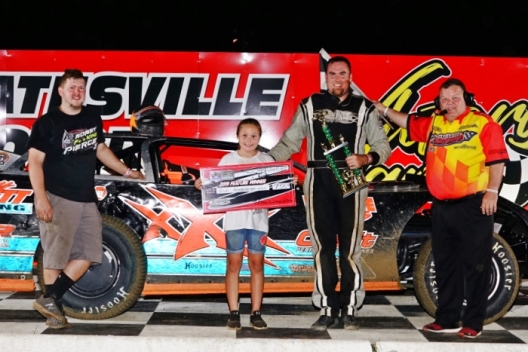 Rick Hearnsberger enjoys victory lane after winning at Batesville Motor Speedway.