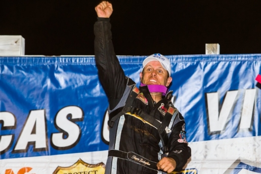 That dramatic turn of events elevated Buckingham from third to first place and he didn’t let the golden opportunity slip through his fingers. He took off on the restart and controlled the final six laps, pulling away to win the A-main by several car lengths over Jared Hawkins of Fairmont, W.Va., who advanced from the 15th starting to register a career-best Lucas Oil Series finish driving Kentuckian Tim Logan’s XR1 Rocket car.