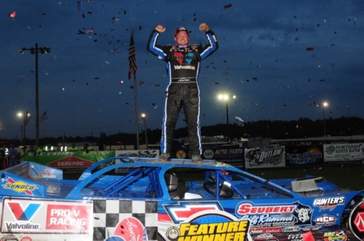 “We had a real good run going,” said the leading series rookie, who is looking for his first tour victory while racing in his home region. “I would’ve like to have seen it go all 50 laps before the rain fell. My driving style, my car just seems to work a lot better in the slick (conditions), and for us to go around as quick as we did after it rained, we’re pretty happy with that. It was a good points night.
