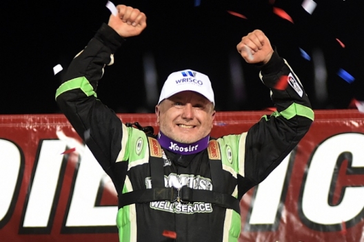 The 47-year-old driver from Newport, Tenn., continued his career-long success at the 3/8-mile showplace oval on the Lucas Oil Late Model Dirt Series, pulling away in the second half of Saturday’s 60-lap feature to collect a $15,000 victory, his second in row on the series and third of the season.