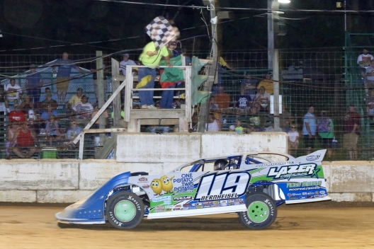 Winner's sponsors: Bernheisel's Lazer Chassis is sponsored by Bernheisel Race Components, One Potato Two Potato, Russ Gibble Roofing & Siding, Pioneer Pole Buildings, Dieffenbach's Kettle Chips, Total Machine, Precision Powder Coating, Kettle Cooked Uglies and Focus Shock Technologies.