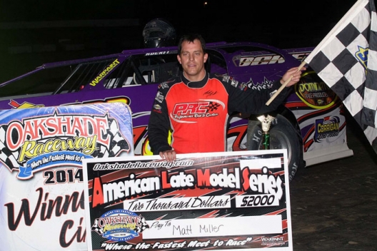 Key notes: Miller was the winner of the $10,000 Summernationals finale held at Oakshade two weeks ago; he has 27 career ALMS victories ... The event was the series third of four stops at the northwestern Ohio oval. ... Brian Ruhlman of Clarklake, Mich., leads Oakshade's weekly points; he finished ninth.