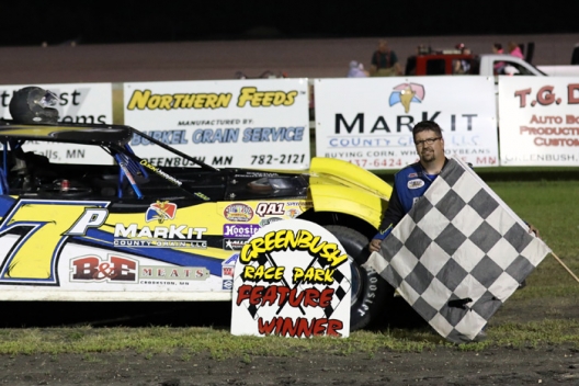 Joey Pederson visits victory lane at Greenbush Race Park.