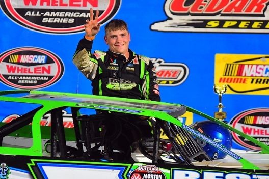 Taking advantage of a lap-37 caution flag that wiped out Jake Redetzke’s commanding lead, John Kaanta surged past the race’s dominant figure on the restart and held on to win the 40-lap NASCAR Late Model feature that closed Friday night’s action at Cedar Lake.