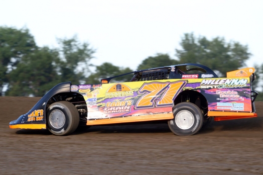 Dustin Strand zips around Devils Lake Speedway.