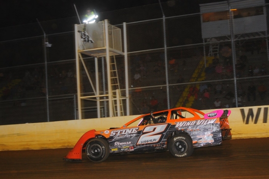 Andrew Yoder takes the checkers at Winchester Speedway.