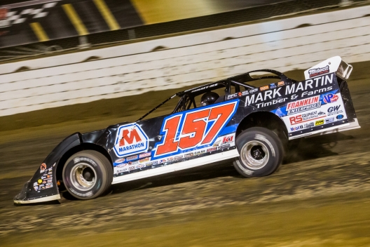 Marlar shot to the lead at the drop of the green flag, with the frontrunners racing single-file through the early distance. As the race leaders approached the tail of the field one lap shy of the halfway mark, second-starting Michael Norris of Sarver, Pa., was able to close in on Marlar. But the reigning World of Outlaws Morton Buildings Late Model Series champion successfully navigated lapped traffic, to again hold a comfortable lead.