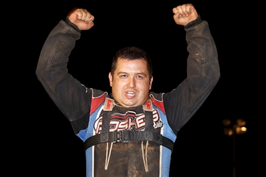 Colten Burdette celebrates his $5,000 Hillbilly 50 victory.