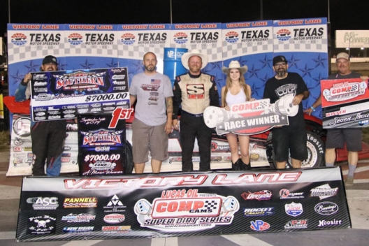 What won the race: Making a rare Late Model start, fourth-starting Chris Brown of Spring, Texas, ran away with the second round of the Southern Dirt Track Championship at Texas Motor Speedway for a $7,000 victory. Winning by more than eight seconds, Brown recorded his first career Comp Cams Super Dirt Series victory while Friday’s winner Cade Dillard finished second.