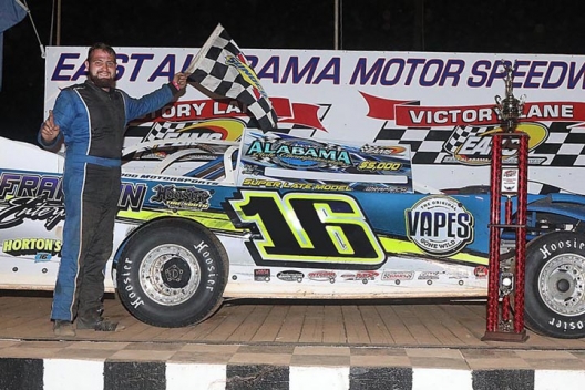 What won the race: Surviving multiple cautions and subsequent restarts in the waning laps, Austin Horton of Newman, Ga., won Sunday’s Alabama State Championship at East Alabama Motor Speedway. Horton needed clean restarts on laps 42 and 44 to turn back Dalton Cook in the 47-lap main event. He finished 0.699 of a second ahead of Cook in winning $5,000.